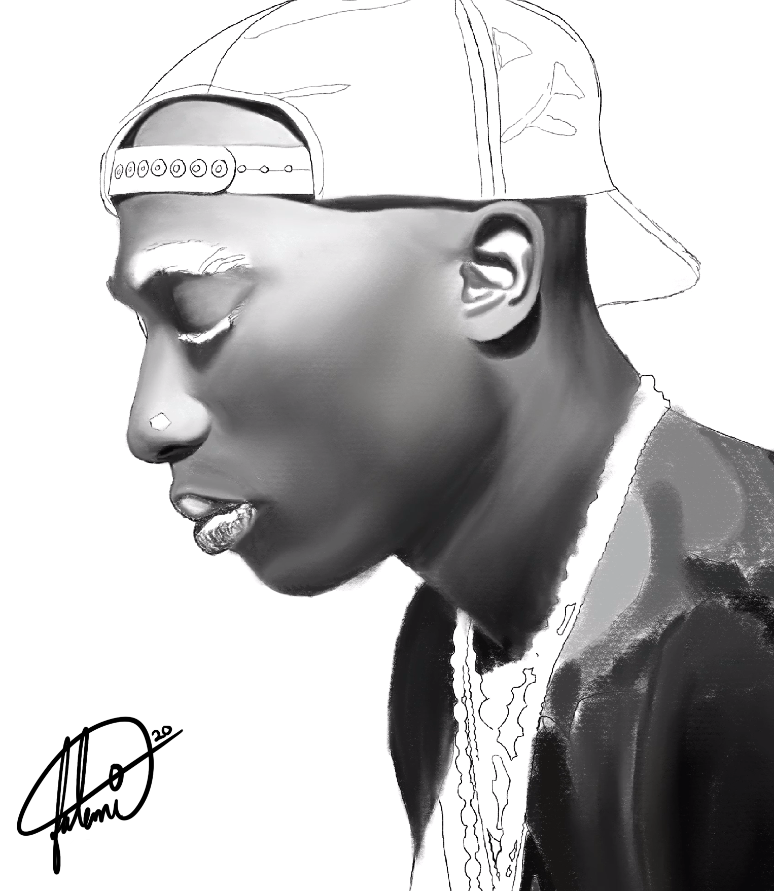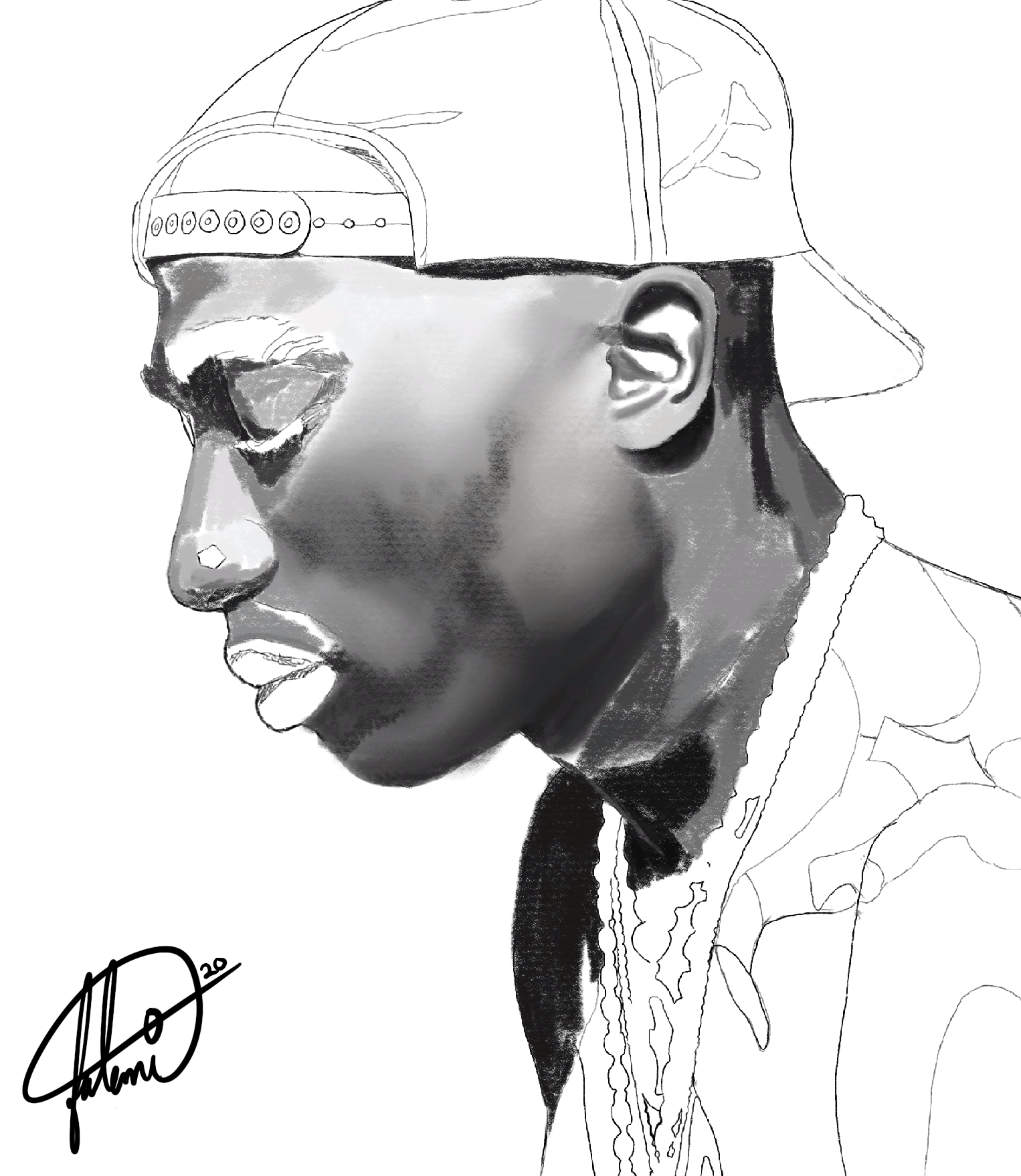 This piece required 20 hours of drawing and 50,000 individual brush strokes to complete.